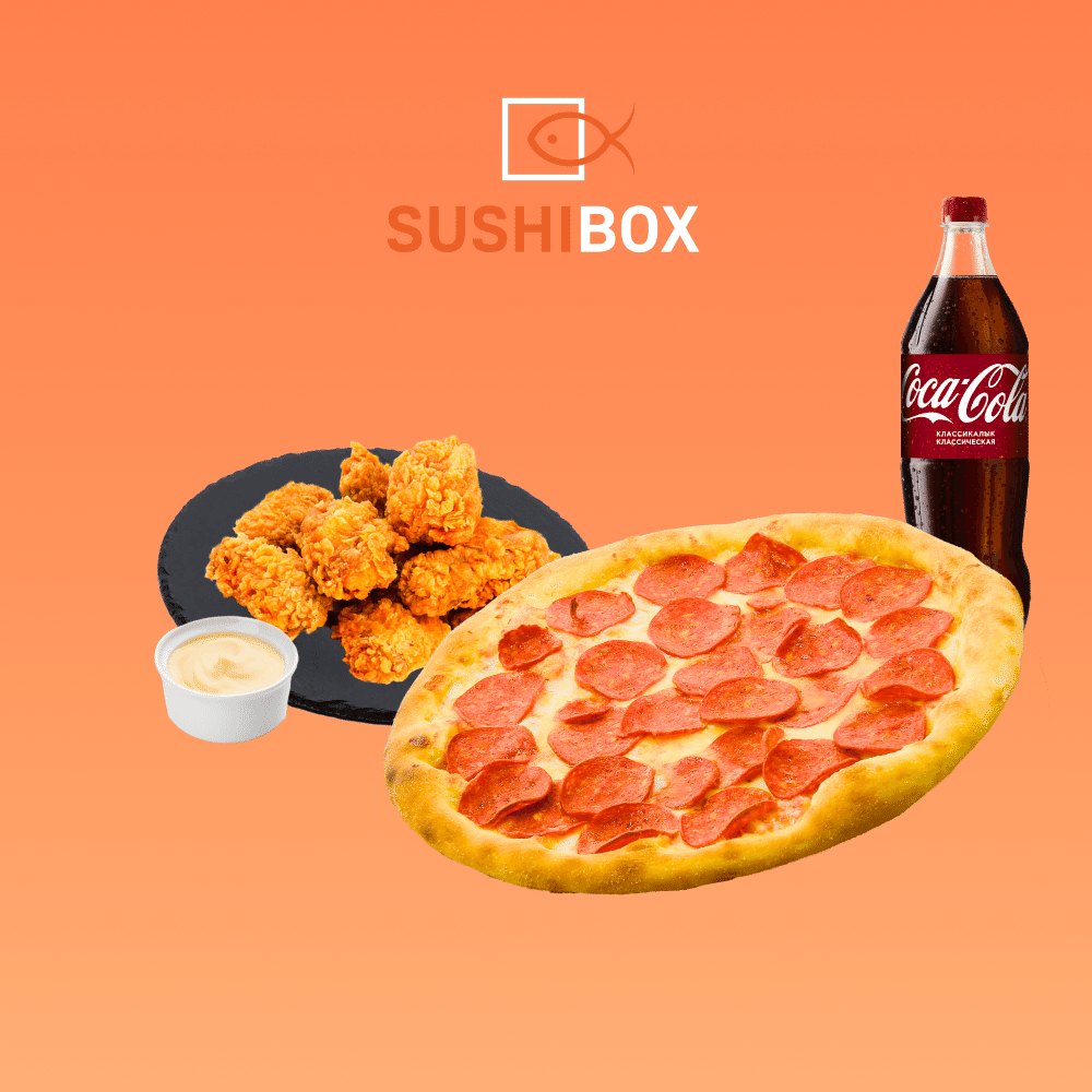 пицца "пепперони", крылышки 6 шт (соус сырный)