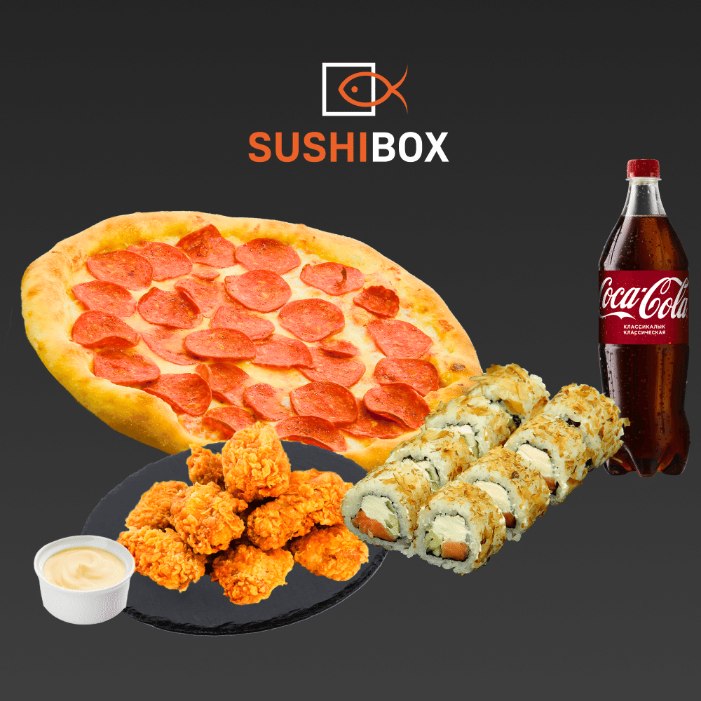 пицца Пепперони, Банзай, Крылышки 9 шт, напиток и соус на выбор
