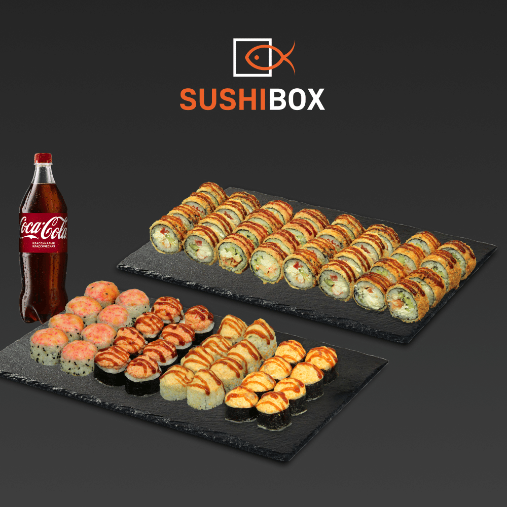 Кабуки, Гриль чикен, Запеченный эби, Нежный краб, Темпура лосось, Фудзияма, Спайси темпура, Эби темпура, напиток на выбор
