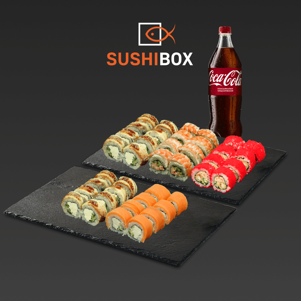 Филадельфия, Канада, Эби фила, Дракон, Калифорния с креветками, напиток на выбор
