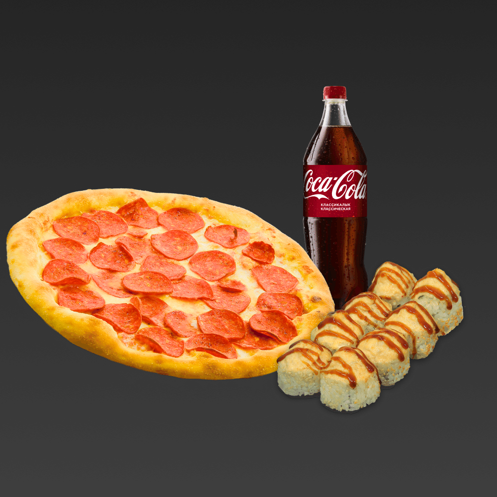 пицца Пепперони, Запеченный лосось, напиток на выбор