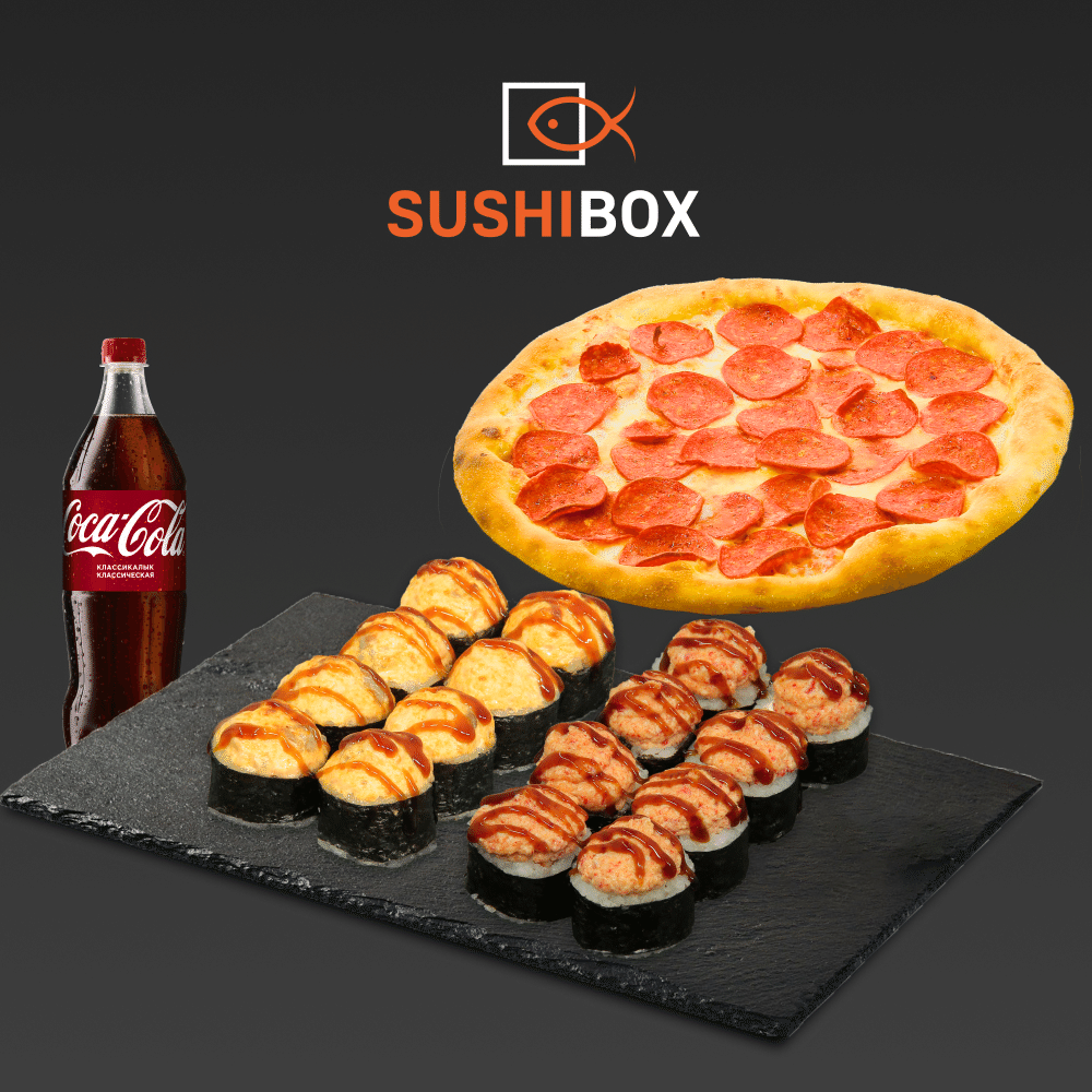 пицца Пепперони, Кабуки, Нежный краб, напиток на выбор